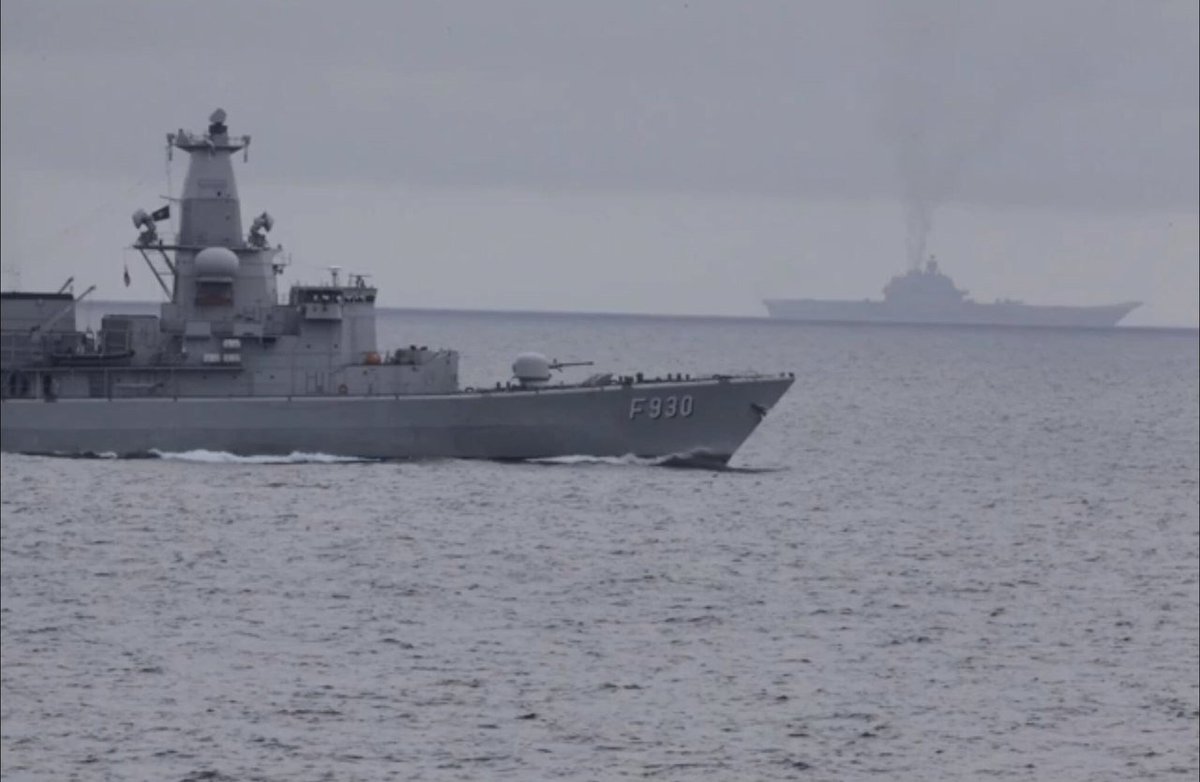 Επίσης δίπλα βρίσκεται η βελγική φρεγάτα 'Leopold I' (F930) ενώ F-15Es της USAF από τη βάση της RAF στο Lakenheath ξεκίνησαν από το πρωί ασκήσεις στην περιοχή ακριβώς από την οποία διέρχεται η ομάδα μάχης του αεροπλανοφόρου "Ναύαρχος Κουζνέτσοφ".