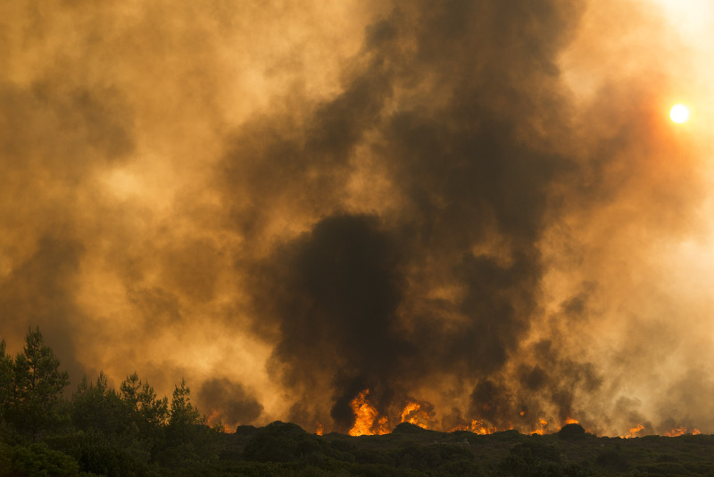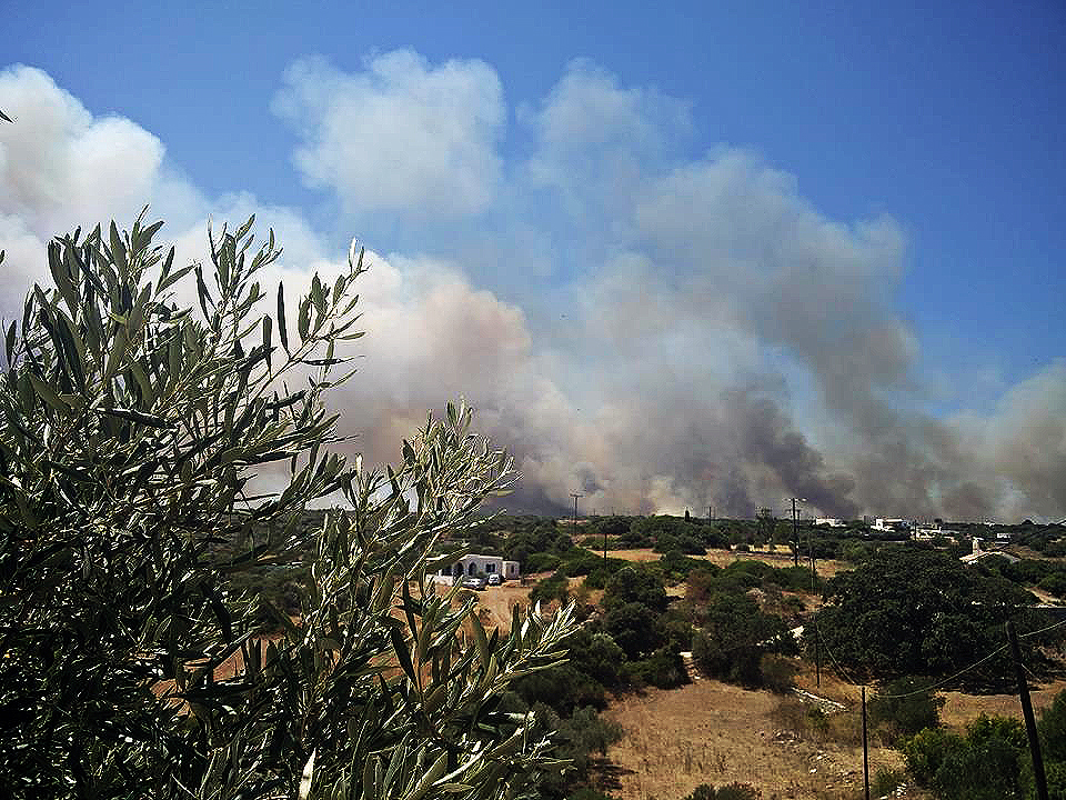 Ηδη, πάντως, έχουν καταστραφεί 15.000 στρέμματα δάσους, σύμφωνα με τον δήμαρχο του νησιού. Οι επόμενες δύο ώρες είναι κρίσιμες, τόνισε ο γ.γ. Πολιτικής Προστασίας, Γιάννης Καπάκης, μιλώντας στο ΑΠΕ. «Αν δεν αλλάξει κατεύθυνση ο άνεμος, θα μπορέσουμε να θέσουμε υπό έλεγχο τη φωτιά», συμπλήρωσε. Το μέτωπο της φωτιάς αυτή την ώρα έχει μήκος 6 χιλιόμετρα, ενώ μάχη με τις φλόγες δίνουν πυροσβεστικές δυνάμεις από όλη την Ελλάδα και σχεδόν το σύνολο των εναέριων μέσων πυρόσβεσης της χώρας. «Πρόκειται για μια δύσκολη πυρκαγιά. Το έδαφος είναι δύσβατο, με ρείκια και θάμνους, και είναι δύσκολη η πρόσβαση για τα πεζοπόρα τμήματα», σημείωσε ο κ. Καπάκης.
