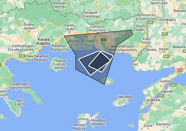 Pentapostagma reveals the areas Athens has committed for this exercise. These are mainly focused on Thrace and the southeastern Aegean, in the triangle Rhodes, Kastelorizo, Karpathos.