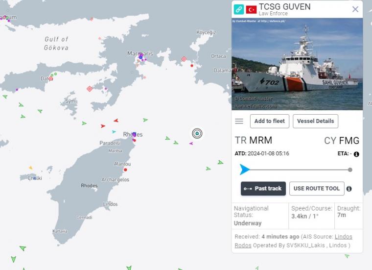 The course of the corvette of the Turkish coast guard can unfortunately be followed in real time and in the application marinetraffic...