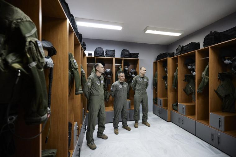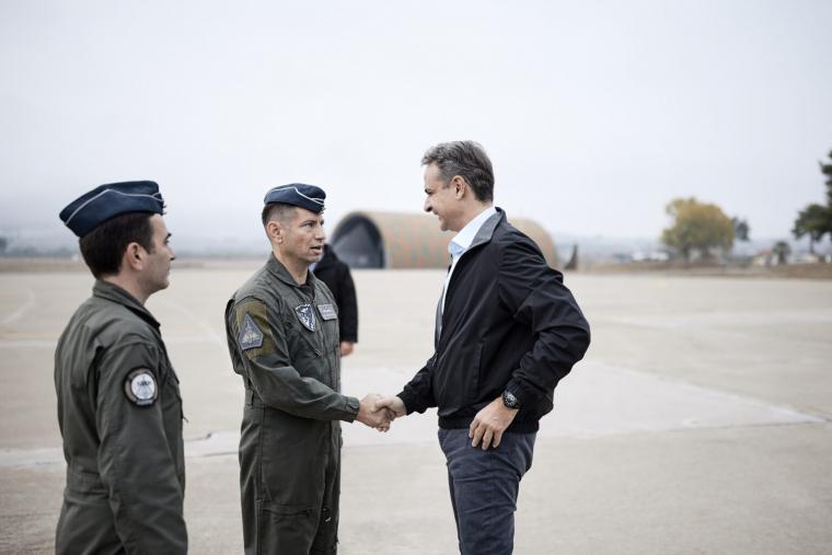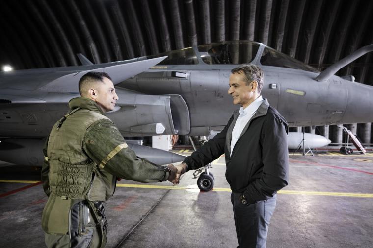 Κατά τη διάρκεια της συνέντευξής του, ο κ. Μητσοτάκης επισκέφθηκε την αεροπορική βάση της Τανάγρας, όπου βρίσκονται τα μαχητικά Rafale.