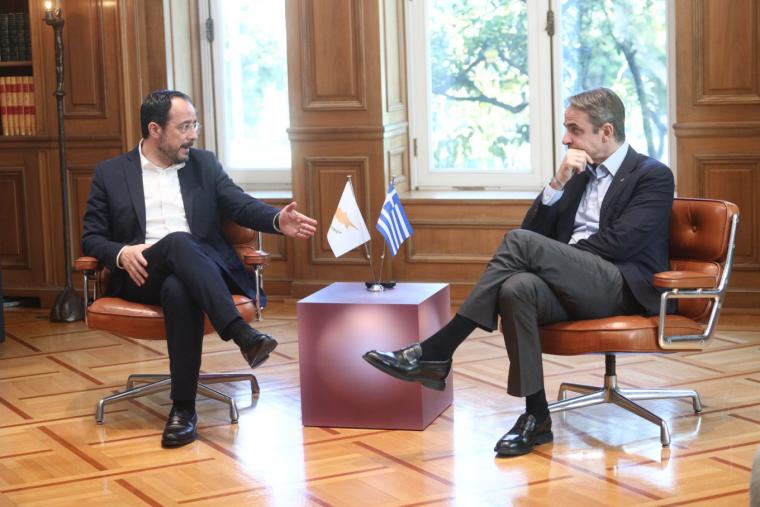 Κατά την έναρξη της συνάντησής τους, ο Κυριάκος Μητσοτάκης και ο Νίκος Χριστοδουλίδης είχαν τον ακόλουθο διάλογο: