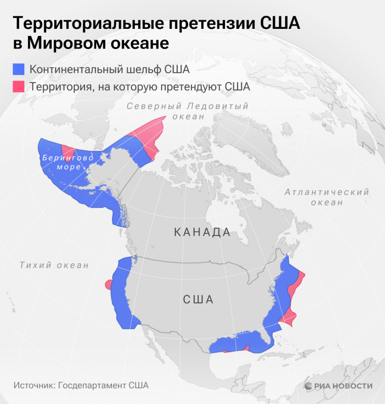 Earlier on Sunday, Bloomberg, citing a State Department statement, reported that the United States had announced the extension of its own portion of the continental shelf in the Arctic. According to the department, some borders "do not create territorial disputes with Russia" but will require settlements with Canada and Japan.