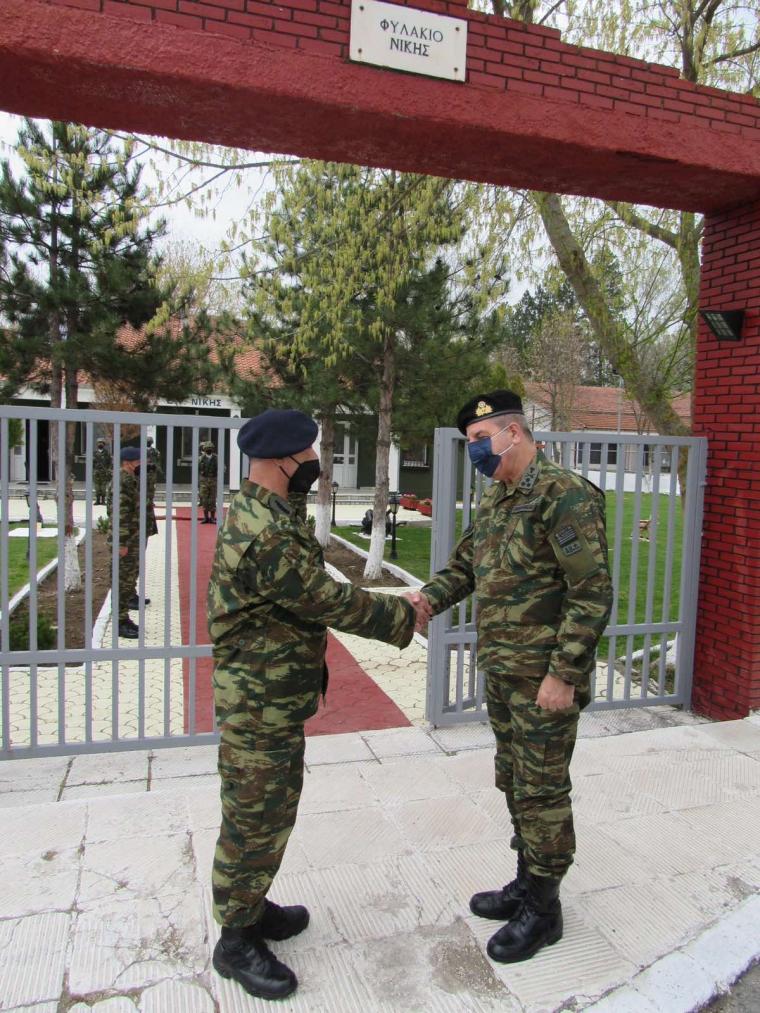(Γ΄ ΣΣ/NRDC-GR «ΜΕΓΑΣ ΑΛΕΞΑΝΔΡΟΣ») Αντιστράτηγο Σωτήριο Κωστάκογλου, επισκέφθηκε Επιτηρητικά Φυλάκια (ΕΦ) και στρατιωτικές εγκαταστάσεις στην Περιοχή Ευθύνης του Σχηματισμού, διαπίστωσε την επιχειρησιακή ετοιμότητα και το υψηλό επίπεδο ηθικού του προσωπικού και αντάλλαξε μαζί του ευχές εν όψει της εορτής του Πάσχα.