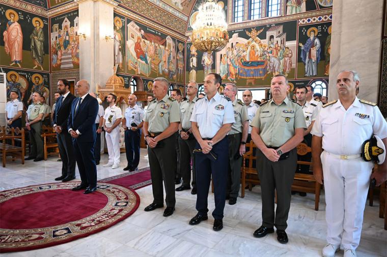 Μετά την τελετή έπαρσης της σημαίας, η οποία θα κυματίζει μεσίστια καθώς έχει κηρυχθεί τριήμερο εθνικό πένθος για τον τραγικό θάνατο των μελών της αποστολής ανθρωπιστικής βοήθειας στη Λιβύη, τελέστηκε μνημόσυνο και τρισάγιο στον ιερό ναό που βρίσκεται μέσα στους χώρους του στρατοπέδου Παπάγου όπου στεγάζονται το υπουργείο Εθνικής Άμυνας και όλα τα γενικά επιτελεία