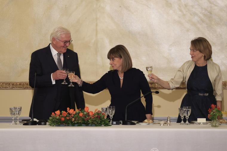 Επίσημο δείπνο για τον Σταϊνμάιερ στο Προεδρικό - Παρών και ο Ρεχάγκελ (Φωτογραφίες)Η Πρόεδρος της Δημοκρατίας, χαρακτήρισε την επίσκεψή του Γερμανού προέδρου στην Ελλάδα επιστέγασμα της διμερούς φιλίας και συνεργασίας