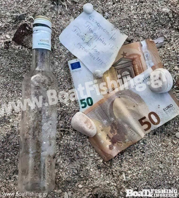 Δεν πίστευαν στη τύχη τους οι τρεις νεαροί όταν βρήκαν ένα μπουκάλι που έφτασε στις ακτές της Λιβύης έχοντας δύο χάρτινα πενηντάευρα και ένα σημείωμα που δεν μπορούσαν να διαβάσουν γιατί ήταν στα Ελληνικά. Χθες Παρασκευή 11/9/20 στις ακτές της περιοχής Ras al-Hilal στην ανατολική Λιβύη ένας νεαρός Λίβυος βρήκε ένα μπουκάλι με 100 ευρώ και ένα χειρόγραφο μήνυμα στα ελληνικά που έγραφε: «ευχαριστούμε Πανορμίτη! Πάντα να μας προσέχεις!».