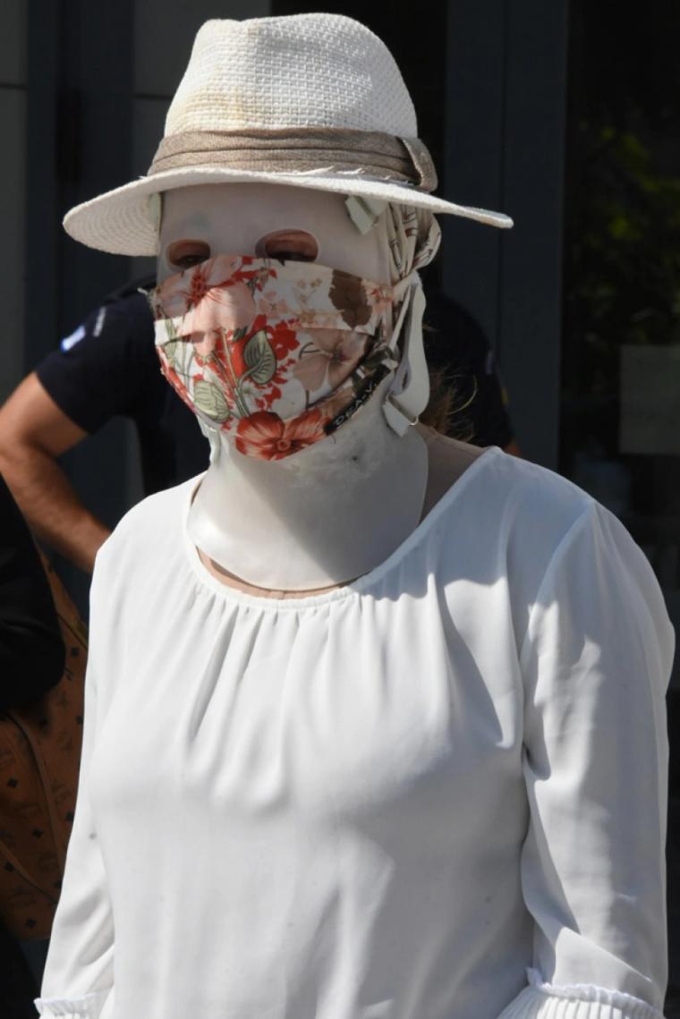 Η Ιωάννα φορούσε ειδική λευκή μάσκα στο πρόσωπό της, λευκό καπέλο και ειδικούς επιδέσμους στα χέρια της. Περπάτησε, από το αυτοκίνητο έως το δικαστήριο, με πολύ μεγάλη δυσκολία, πολύ αργά συνοδευόμενη από τον δικηγόρο της Απόστολο Λύτρα, ενώ πίσω της βρισκόταν η μητέρα της.