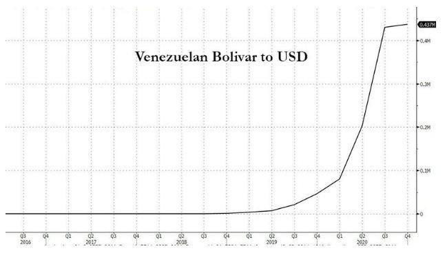 Τα παραπάνω μπορεί να ισχύουν στην περίπτωση των ΗΠΑ, ωστόσο στη Βενεζουέλα του οικονομικού αρμαγεδδώνα τα πράγματα φαίνεται έχουν πάρει διαφοετική τροπή. Το πρόβλημα της Βενεζουέλας είναι ότι όσο περισσότερο τυπώνει, τόσο περισσότερο χρειάζεται να τυπώσει επιπλέον.