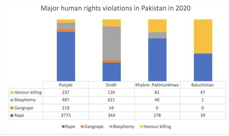 According to the HRCP, Pakistan saw large-scale discrimination against minority communities, 31 cases of forced conversions while 430 cases of honour killing. Pakistani agencies detained or arrested people en masse during the crackdowns and put them in the overcrowded jails, thus increasing the possibilities of infection. Despite appeals, the government did not listen and even the Supreme Court did not act, said Amnesty International. The human right organisation also said that the use of enforced disappearances became more blatant and frequent in 2020 despite the Covid-19 lockdowns. There has been discriminatory and violent campaign against the religious minorities in Pakistan. As many as 40 people in Pakistan faced death sentence by end of 2020 thanks to blasphemy law.