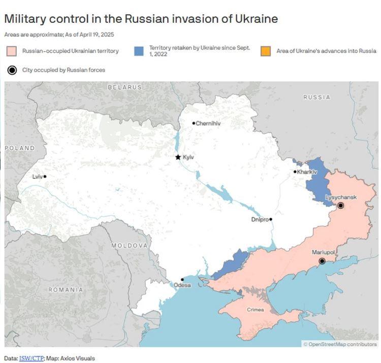 Το Κίεβο και ευρωπαίοι σύμμαχοί του από την άλλη απαιτούν την πλήρη αποκατάσταση των συνόρων της Ουκρανίας πριν από το 2014, θέση που ο αμερικανός υπουργός Άμυνας Πιτ Χέγκσεθ χαρακτήρισε τον Φεβρουάριο «μη ρεαλιστική».