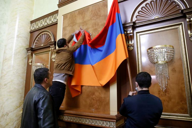 Πλήθος διαδηλωτών εισέβαλε στην έδρα του κοινοβουλίου της Αρμενίας στο Γερεβάν, μετά την υπογραφή συμφωνίας για τερματισμό των εχθροπραξιών στο Ναγκόρνο Καραμπάχ.