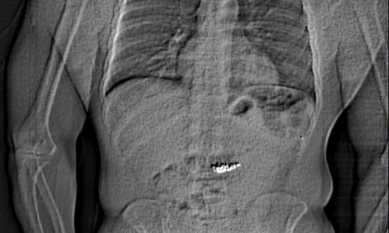 Η αστυνομία έδωσε αργότερα στη δημοσιότητα μια ακτινογραφία που φαινόταν να δείχνει την κοιλιά ενός ατόμου με ένα ξένο αντικείμενο στο εσωτερικό της.