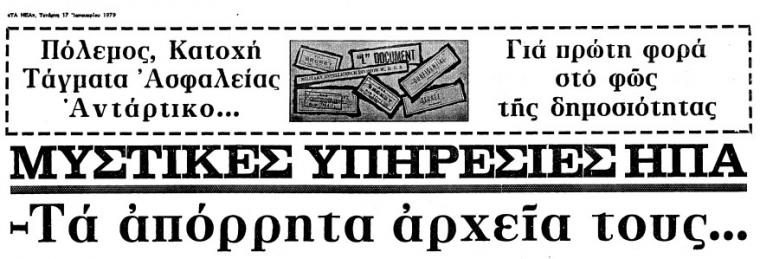 «ΤΑ ΝΕΑ» δημοσίευσαν, τον Ιανουάριο του 1979, σειρά αποχαρακτηρισμένων εγγράφων του προκατόχου της CIA, του OSS (Γραφείου Στρατηγικών Υπηρεσιών) καθώς και απόρρητες, την περίοδο εκείνη, διπλωματικές αναφορές.