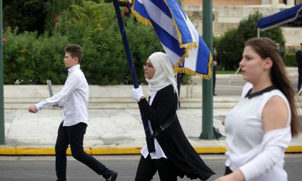 Η παρελαύνουσα μουσουλμάνα εκπέμπει δύο μηνύματα ταυτόχρονα. Το πρώτο, λόγω σημαίας και ημέρας, μήνυμα ελευθερίας, εθνικής και ατομικής. Το δεύτερο, λόγω μαντήλας, μήνυμα υποδούλωσης, ατομικής τουλάχιστον. Είναι τόσο δύσκολο να αντιληφθούμε την αντίφαση; Κι αν το πάμε παραπέρα, ποια θα ήταν η στάση ενός πιστού αφοσιωμένου σουνίτη αλλά πολιτογραφημένου Έλληνα (π.χ. μετανάστη δεύτερης γενιάς) σε περίπτωση που η Ελλάδα πολεμούσε με τη Σαουδική Αραβία; Μπορεί να είναι απίθανο ενδεχόμενο αλλά και οι Τούρκοι σουνίτες είναι. (Βέβαια το ερώτημα είναι ευρύτερο: τι θα κάνει κάποιος που θεωρεί ότι ανήκει πρωτίστως σε μια υπερκρατική συλλογικότητα – θρησκευτική ή πολιτική - όταν η χώρα του εμπλακεί σε πόλεμο με έναν φορέα αυτής της συλλογικότητας;)