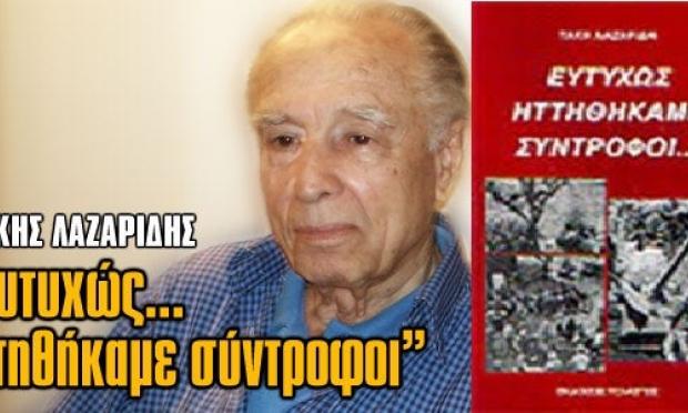 Θα ρωτήσετε ποιος είναι ο Τάκης Λαζαρίδης. Μερικοί ασφαλώς έχουν ξανακούσει αυτό το «ευτυχώς ηττηθήκαμε σύντροφοι». Είναι ο τίτλος ενός βιβλίου που έγραψε και κυκλοφόρησε πριν από 20 χρόνια και έκτοτε επαναλαμβάνεται με μια ειρωνική τραγικότητα σε πολλές συζητήσεις, ιδιαίτερα αριστερών. ΄Η από δεξιούς με θριαμβευτική έπαρση. Για τους πρώτους είναι συντριβή και αυτομαστίγωμα, για τους δεύτερους δικαίωση.
