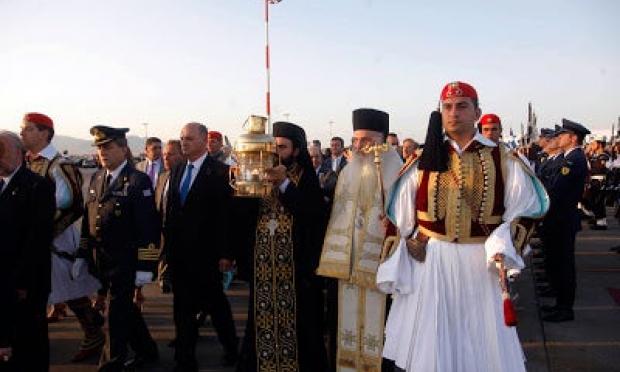 Η πλειονότητα λοιπόν αυτών των ανθρώπων, θέλει, επιθυμεί, τη βρίσκει ρε παιδί μου, να βγάζει το στρατό στους δρόμους και να αποδίδει τιμές Αρχηγού Κράτους σε μια φλόγα. Στέλνουμε αεροπλάνα να πάνε να μας τη φέρουν και μετά μας αρέσει να την κάνουμε «βόλτα» σε ολόκληρη τη χώρα.