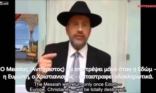 Λέει ο άθλιος ραβίνος στο βίντεο : - Ο αντίχριστος "μεσσίας" (τους) θα επιστρέψει μόνο όταν η Εδώμ - η Ευρώπη, ο Χριστιανισμός - καταστραφεί ολοκληρωτικά.