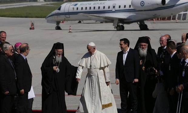Ο Πάπας Φραγκίσκος, ο οποίος έφτασε στη Λέσβο στις 10.10 το πρωί -δέκα λεπτά απ' ότι αναμενόταν- έστειλε ένα ηχηρό μήνυμα για το προσφυγικό από τη Μυτιλήνη και στις πρώτες του δηλώσεις εξήρε τη στάση των Ελλήνων απέναντι στους πρόσφυγες.