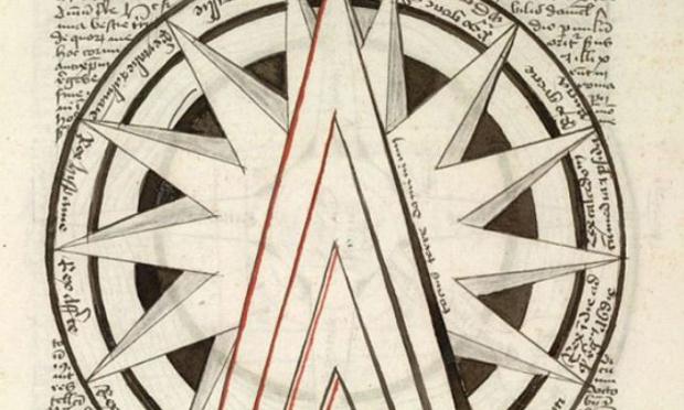 Ένα από τα σχέδια του χειρογράφου απεικονίζει έναν μεγάλο κύκλο που αντιπροσωπεύει τη Γη, περιβαλλόμενη από τον ωκεανό με «σφήνες» ζωγραφισμένες στο κέντρο που συμβολίζουν την Ασία, την Αφρική και την Ευρώπη.