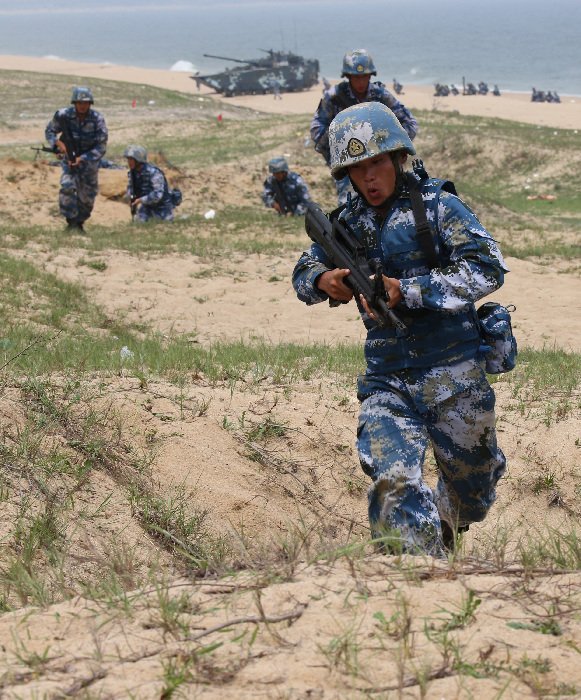 Πεζοναύτες με αμφίβια οχήματα ZBD-05, μαχητικά εκτελούν περίπλοκες ασκήσεις με εναέριο ανεφοδιασμό, ασκήσεις με πραγματικά πυρά στον δυτικό Ειρηνικό ακόμη και ασκήσεις βιολογικού και χημικού πολέμου περιλαμβάνουν τα κινεζικά σενάρια.