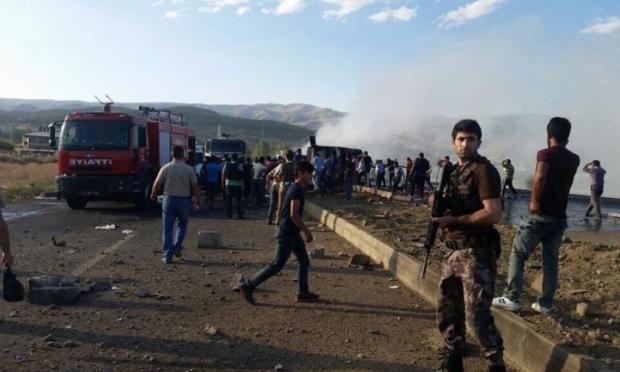 Στο πρώτο μαχητές του PKK ανατίναξαν τεθωρακισμένο όχημα που μετέφερε αστυνομικούς με κατεύθυνση το αεροδρόμιο του Μπίγκιολ.