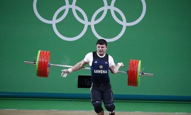 Ο Αντρανίκ Καραπετιάν, ένα από τα φαβορί για μετάλλιο στην κατηγορία των 77 κιλών της άρσης βαρών, υπέστη σοβαρό τραυματισμό στον αριστερό του αγκώνα σε προσπάθεια του στο ζετέ.