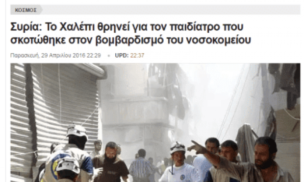 Τα πλάνα των μεγάλων ελληνικών καναλιών απο την γιαλαντζί χημική επίθεση ήταν όλα με το σύμβολο της δήθεν διασωστικής οργάνωσης “Λευκά Κράνη”!