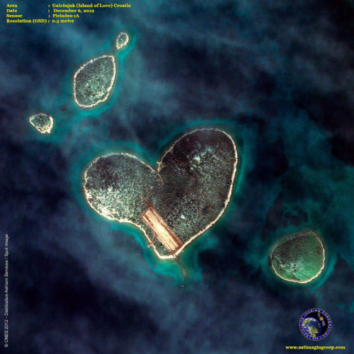Το Galešnjak βρίσκεται στο κανάλι Pašman της Αδριατικής, στην ηπειρωτική Κροατία και βασικό χαρακτηριστικό του είναι το σχήμα του, αφού προκαλεί ποικίλα ερωτηματικά ότι δεν πρόκειται για αληθινό αλλά για αποτέλεσμα Photoshop. Σε σχήμα καρδιάς λοιπόν είναι γνωστό και ως το “Νησί του Έρωτα”, το οποίο επισημάνθηκε στο Google Earth το 2009 και από τότε έχει γίνει περιζήτητο.