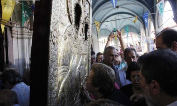 Σε ένα από τα σημαντικότερα προσκυνήματα της Kοιμήσεως της Θεοτόκου, αυτό της Παναγίας στην ορεινή Αγιάσο της Λέσβου ανηφόρισαν χιλιάδες κάτοικοι και επισκέπτες του νησιού διανύοντας με τα πόδια δεκάδες χιλιόμετρα. Σκοπός τους ήταν να προσκυνήσουν την εικόνα της Παναγίας, σε ένα ναό σημαντικής αξίας, με βυζαντινά θεμέλια, από τα χρόνια της εικονομαχίας.