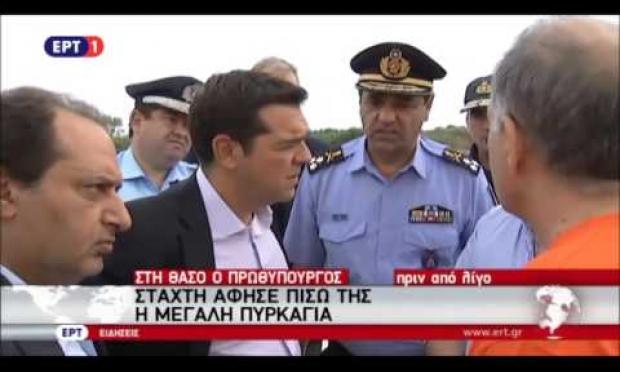 Ο πρωθυπουργός Αλέξης Τσίπρας πραγματοποίησε επίσκεψη "αστραπή" στην Θάσο, η οποία έχει κηρυχτεί σε κατάσταση έκτακτης ανάγκης λόγω της μεγάλης φωτιάς, η οποία άφησε στο διάβα της καταστροφή , πόνο και δάκρυ, αναφέρει το διεθνές πρακτορείο ειδήσεων AP .