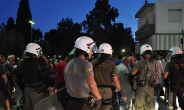 Τα ΜΑΤ απέκλεισαν τους διαδηλωτές, αλλά η κατάσταση ξέφυγε όταν κάποιοι από τους συγκεντρωμένους προσπάθησαν να «σπάσουν» τις γραμμές των αστυνομικών και να πάνε στον καταυλισμό προσφύγων.