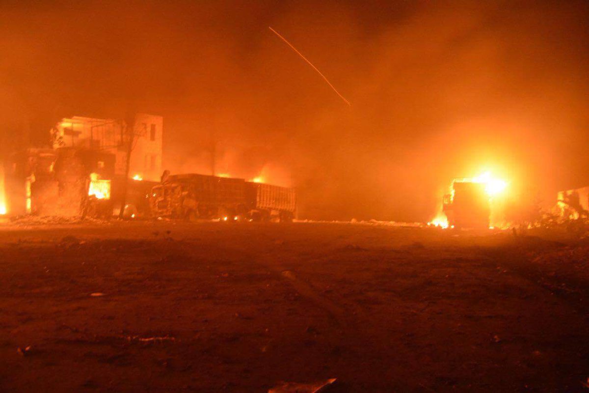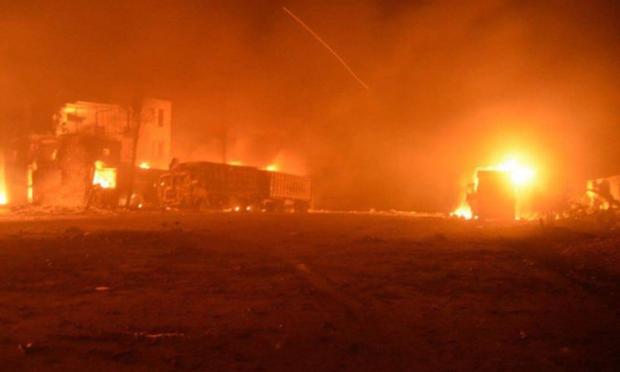 Κόλαση! Μόνο με αυτή τη λέξη μπορεί να περιγράψει κάποιος ότι έγινε χτες τα μεσάνυχτα στη Συρία. 18 από 31 φορτηγά της οργάνωσης "Λευκά Κράνη" που μάχεται τον Μ.Άσαντ και βοηθά τους τζιχαντιστές έγιναν στάχτη με 32 ανθρώπους να απανθρακώνονται!