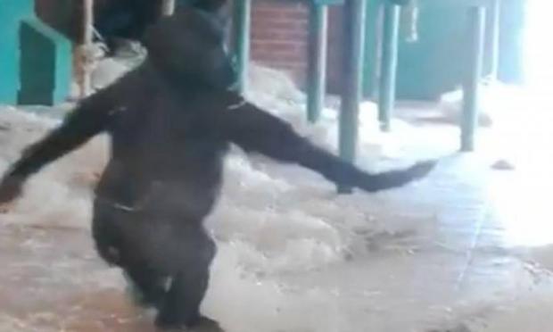 Για 1,5 ώρα ο γορίλας κυκλοφορούσε ελεύθερος στον ζωολογικό κήπο με οπλισμένους αστυνομικούς και ένα ελικόπτερο να προσπαθούν να τον εντοπίσουν αλλά και να διασφαλίσουν ότι κανείς από τους επισκέπτες δεν θα κινδυνεύσει.