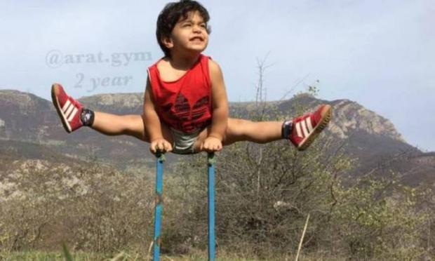 O μικρός που βλέπεται στο βίντεο ονομάζεται Αράτ Χουσείν και είναι 2 ετών. Οι ικανότητες του στην γυμναστική όμως, μας λένε άλλα. Ο Αράτ ξεκίνησε να γυμνάζεται όταν ήταν μόλις 9 μηνών. Ο πατέρας του παρατήρησε ότι ο μικρός έχει ένα ιδιαίτερο ταλέντο στην γυμναστική και από τότε εξασκείτε στο σπίτι κάθε μέρα.