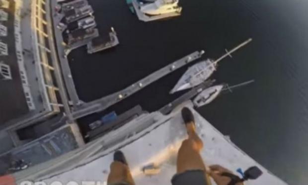 Αυτή τη φορά ο τύπος που αποκαλεί τον εαυτό του επαγγελματία έπεσε από ένα κτήριο 8 πατωμάτων, το οποίο βρισκόταν πάνω από το λιμάνι Newport στην παραλία Newport της Καλιφόρνια και προσγειώθηκε στο νερό. Αν ήταν επικίνδυνο; Δες και κρίνε.