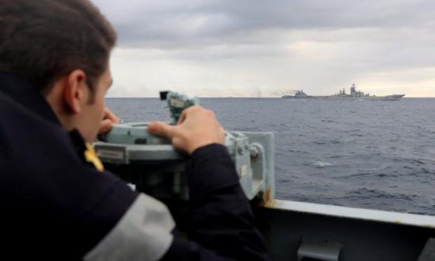 Πανικόβλητοι οι Βρετανοί αναφωνούν "οι Ρώσοι έρχονται" στη θέα της ρωσικής αρμάδας με την Φρεγάτα Type 23 F239 Richmond, κλάσης Duke, και τα αντιτορπιλικά HMS Duncan και Dragon, Type 45, να έχουν γίνει η "σκιά" του ρωσικού αεροπλανοφόρου. Το ΝΑΤΟ στέλνει οκτώ πολεμικά πλοία.