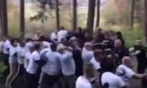 Ενα βίντεο που κυκλοφορεί τις τελευταίες ώρες στο διαδίκτυο, δείχνει από τη μία πλευρά χούλιγκαν του Στρασβούργου και της Νανσί κι από την άλλη εκείνους της Φέγενορντ να επιδίδονται σε ένα ανελέητο ξύλο μέσα στο δάσος (Οι Γάλλοι φορούν τις άσπρες μπλούζες και οι Ολλανδοί τις μαύρες).