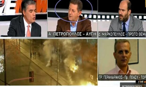 Ο κύριος Α .Πετρόπουλος της εφημερίδας Αυγή στο τηλεοπτικού δελτίο του Έ βγήκε και είπε ότι αθωώνει τους δράστες που έκαιγαν τη γαλανόλευκη λέγοντας πως το κάψιμο της σημαίας δεν σημαίνει κάτι…