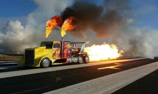 Το πρώτο μέρος του βίντεο δείχνει ένα φορτηγό εξοπλισμένο με 3 στροβιλοκινητήρες Westinghouse J34 (που χρησιμοποιείται από το XF-90 και πολλά άλλα αεροσκάφη) εναντίον ενός αεροπλάνου AT-6 κατά τη διάρκεια ενός αγώνα στο Miramar Air Show.
