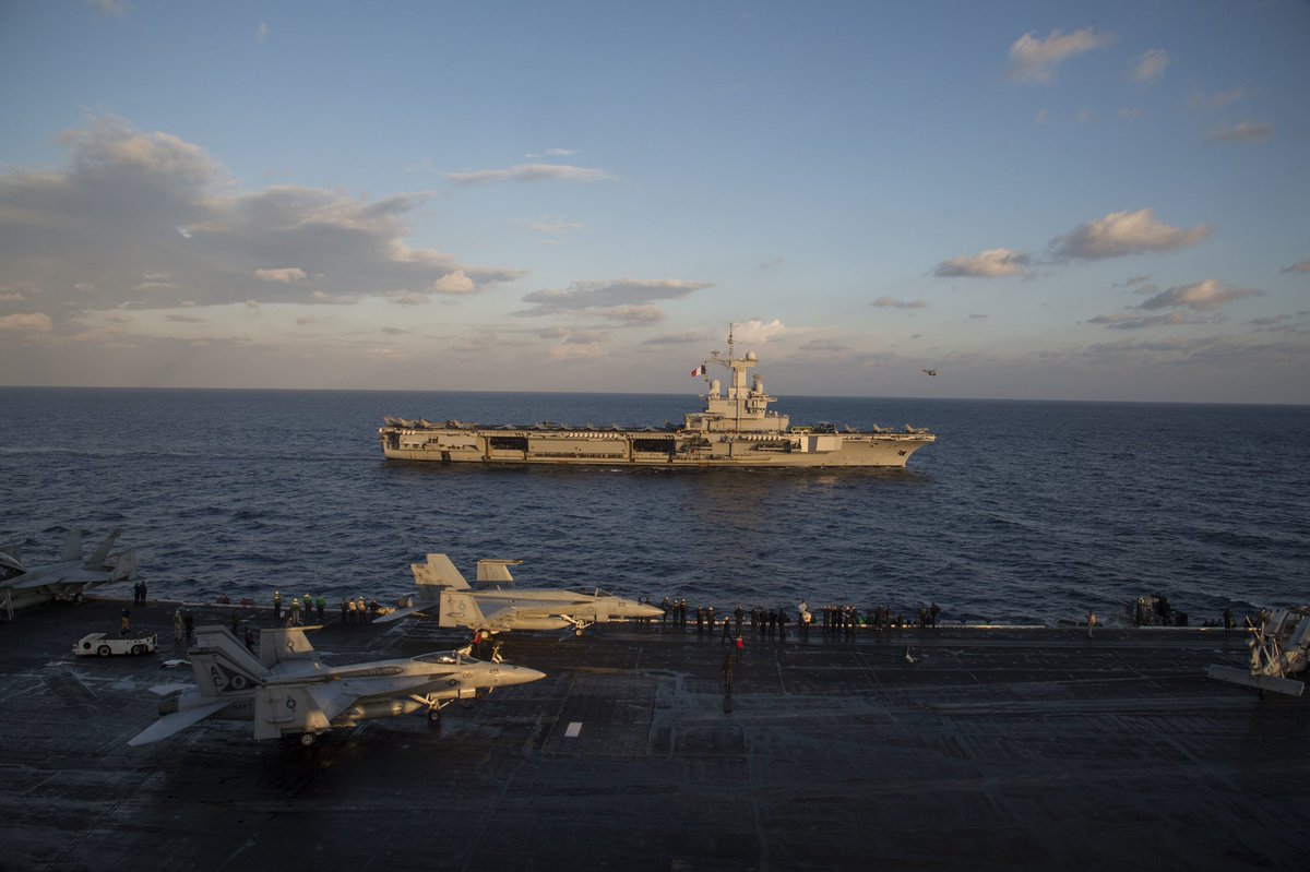 Ο αμερικανικός στρατός σκοπεύει να χρησιμοποιήσει την ισραηλινή ακτή ως στρατιωτική βάση κατά των στρατευμάτων σε κοντινές περιοχές, συμπεριλαμβανομένων των ρωσικών δυνάμεων στη Συρία σύμφωνα με την Εθνική Πράξη Άμυνας που αφορά την αδειοδότηση των ΗΠΑ (NDAA) για αυτόν τον σκοπό. Πρόκειται για αποκάλυψη-σοκ. Σήμερα τα αεροπλανοφόρα USS Eisenhower και το γαλλικό FS Charles de Gaulle ένωσαν τις δυνάμεις τους απέναντι από το ρωσικό αεροπλανοφόρο "Ναύαρχος Κουζνέτσοφ"! Χαρακτηριστικές είναι οι εικόνες παρακάτω.