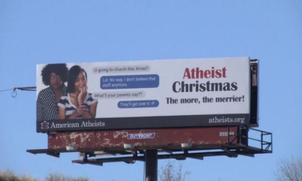 Έγινε παράδοση αρχές Δεκεμβρίου ο όμιλος που αυτοπροσδιορίζεται ως «Αμερικανοί άθεοι» να καλούν τον κόσμο να κάνει Χριστούγεννα μακριά από την εκκλησία και χωρίς Θεό! Ξεφύτρωσαν και φέτος λοιπόν διαφημιστικές πινακίδες στη Βιρτζίνια, στο Κολοράντο και άλλες αμερικανικές πολιτείες αυτό το μήνα, ενθαρρύνοντας τους Αμερικανούς να εγκαταλείψουν ουσιαστικά τον «Χριστό» έξω από τα Χριστούγεννα.
