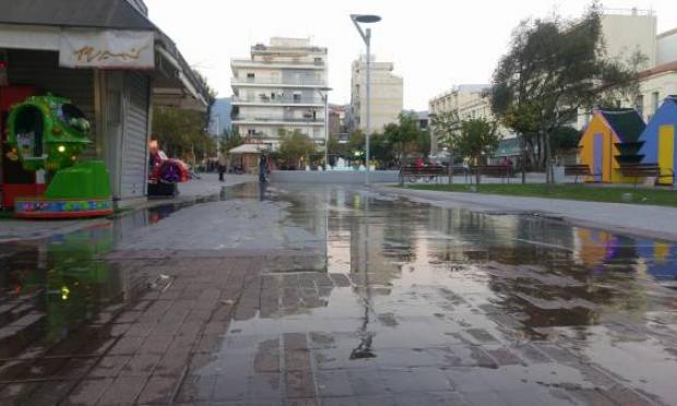 Κάτι πήγε σήμερα στραβά με το συντριβάνι στο βόρειο τμήμα της κεντρικής πλατείας της Καλαμάτας.