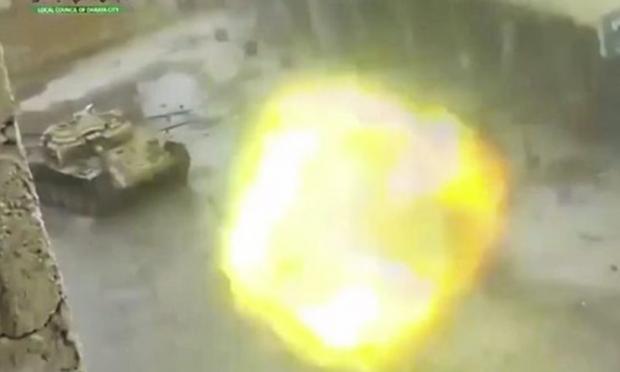 Νεύρα από ατσάλι είχε ο άνδρας στη Συρία, ο οποίος κατέγραψε τη στιγμή που τανκ βομβαρδίζει το κτήριο μέσα στο οποίο βρίσκεται.