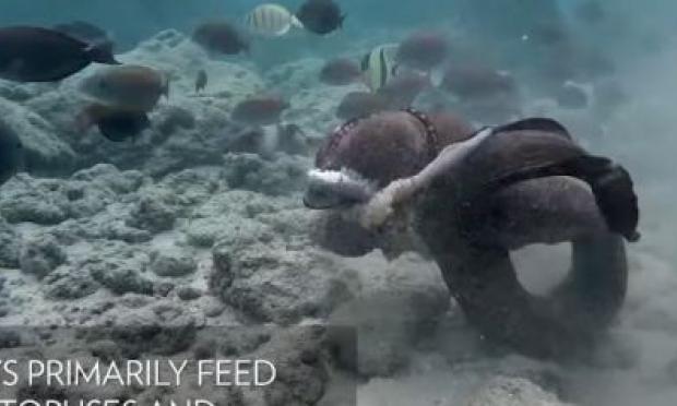 Το αποτέλεσμα ήταν η ηττημένη σμέρνα, με τα υπολείμματα του χταποδιού πάνω της, να στραφεί στους δύτες.