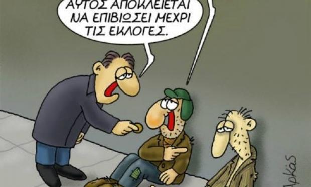 Σύμφωνα με τον σκιτσογράφο η παροχή της κυβέρνησης σε αυτή τη χρονική στιγμή, δεν έχει τόσο φιλανθρωπικό χαρακτήρα αλλά σχετίζεται με το ενδεχόμενο εκλογών.