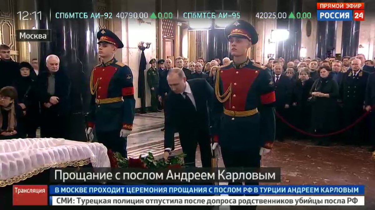 Σε κλίμα οδύνης, ένας συντετριμμένος Βλαντιμίρ Πούτιν ορκίστηκε εκδίκηση πάνω από το φέρετρο του πρέσβη, Α.Καρλόφ, ο οποίος δολοφονήθηκε άνανδρα. Μπορεί να ξάφνιασε αρκετούς αλλά ο Β.Πούτιν κατόπιν αναφορών των ρωσικών μυστικών υπηρεσιών ήταν αποκαλυπτικός. Πίσω από τη δολοφονία δεν είναι η Τουρκία αλλά αυτό θα το χρησιμοποιήσει ο Β.Πούτιν για να την "στραγγαλίσει" περαιτέρω για ότι έγινε με εγκληματική αμέλεια της. Η Τουρκία έχει μείνει χωρίς συμμάχους με τις ΗΠΑ απέναντι. Σύμφωνα με πληροφορίες θα ζητήσει την έκδοση του ιμάμη Φ.Γκιουλέν από τις ΗΠΑ ικανοποιώντας την Τουρκία. Η Άγκυρα βρίσκεται υπό την πλήρη ομηρεία του Β.Πούτιν.