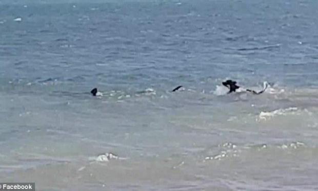 Το βίντεο δείχνει το σκυλί να πηδά μέσα στο νερό και να… παίρνει στο κυνήγι τον καρχαρία σε μια παραλία στο νησί Mabuiag νησί.