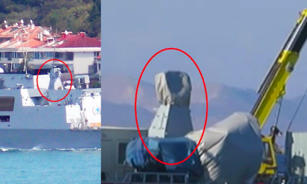 Στο σκάφος, σύμφωνα με το militaire.gr, βρίσκεται ένας οικίσκος προσωρινού συνεργείου εγκαταστάσεων, ένα container 10 ft (πιθανή αποθήκη εργαλείων) δύο απροσδιόριστα φορτία καλυμένα με μουσαμάδες και ένας πύργος ύψους πέντε μέτρων περίπου τοποθέτησης αισθητήρων σε πολεμικό πλοίο.
