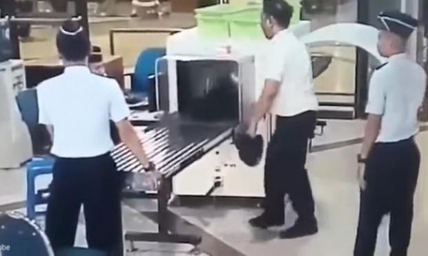 Στο βίντεο, ο τριαντάχρονος μοιάζει να παραπαίει, αφήνει επανειλημμένα να του πέσουν από τα χέρια τα πράγματά του και οι αστυνομικοί που χειρίζονται τον σαρωτή ακτίνων Χ αναγκάζονται να τον βοηθήσουν.